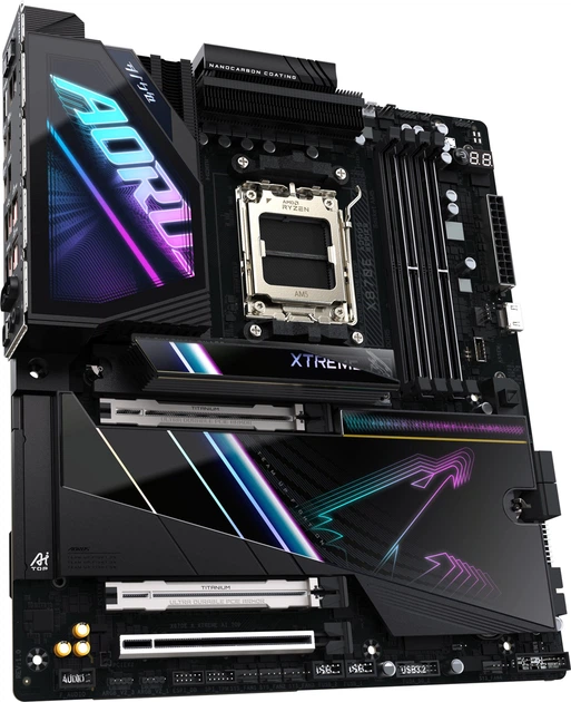 - Tytanowy slot PCIe UD Slot X: slot PCIe 5.0 x16 z tytanową osłoną dla maksymalnej ochrony kart graficznych