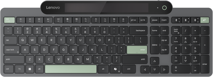 Lenovo Self-Charging Bluetooth Keyboard wykorzystuje zaawansowaną technologię, która wyznacza nowy standard w zakresie oszczędzania energii. Jej niezwykła innowacyjność polega na konstrukcji bez baterii, która dzięki niskiemu zużyciu energii działa płynnie, wykorzystując oświetlenie otoczenia. Łączność Bluetooth zapewnia stabilne połączenie z maksymalnie trzema urządzeniami jednocześnie. Ponadto produkt jest wykonany w 95% z tworzyw sztucznych pochodzących z recyklingu poużytkowego, co odzwierciedla silne zaangażowanie w zrównoważony rozwój środowiska.