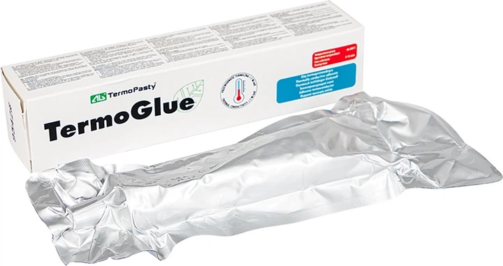 Klej termoprzewodzący TermoGlue - to doskonały sposób przymocowania radiatorów np. na kosciach pamięci, tranzystorach lub mostkach. Utworzone w ten sposób połączenie jest super trwałe i ma doskonałe parametry odprowadzania ciepła.