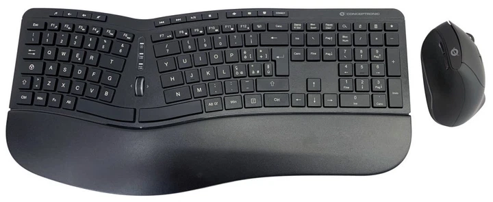 Zestaw bezprzewodowej Conceptronic Wireless Ergonomic Keyboard+Mouse EN (IT) Black (ORAZIO02IT)