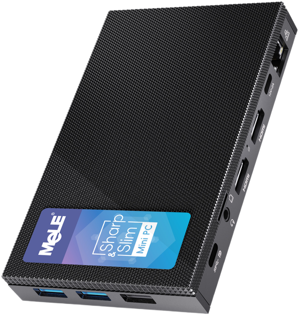 Ultrakompaktowy, bezwentylatorowy minikomputer MeLe Quieter4 z 4-rdzeniowym procesorem Intel Alder Lake-N100 12. generacji, 8 GB pamięci RAM i 128 GB pamięci eMMc. Komputer jest niewielki, nie zajmuje dużo miejsca w domu i jest wygodny w transporcie.