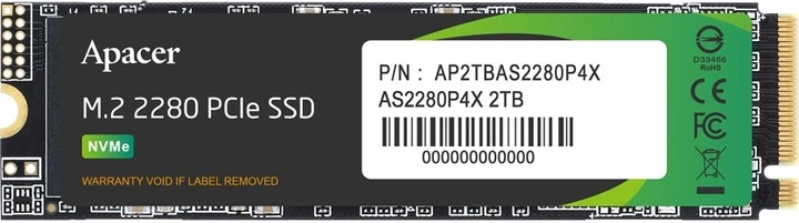 SSD диск Apacer AS2280P4X 256GB NVMe M.2 2280 PCIe 3.0 x4 3D NAND TLC (AP256GAS2280P4X-1)