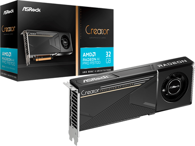 Відеокарта ASRock PCI-Ex AMD Radeon AI PRO R9700 Creator 32GB (256bit) (2920/20000) (4 x DisplayPort) (R9700 CT 32G) Залишити відгук 6 800,60złЗакінчився